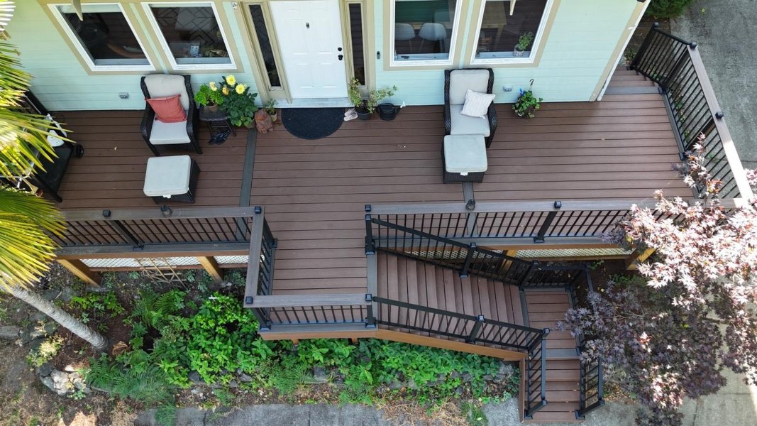 In the photo on the left, an elderly woman was left with an unfinished deck and railing from a low-bid contractor that abandoned the job. Furthermore, the contractor had used Douglas Fir – which is not rot resistant – and paracord rather than stainless steel cable for the railing. Therefore, the railing, specifically intended to